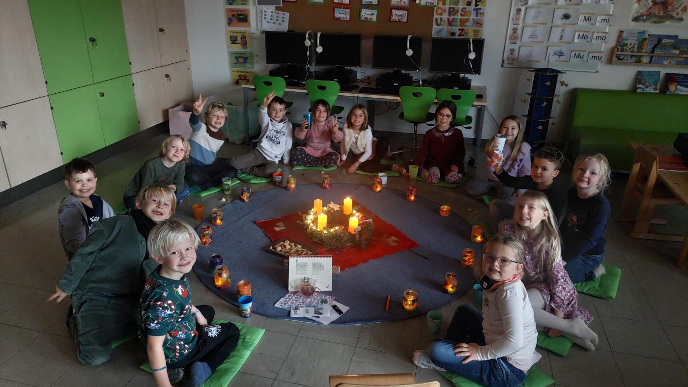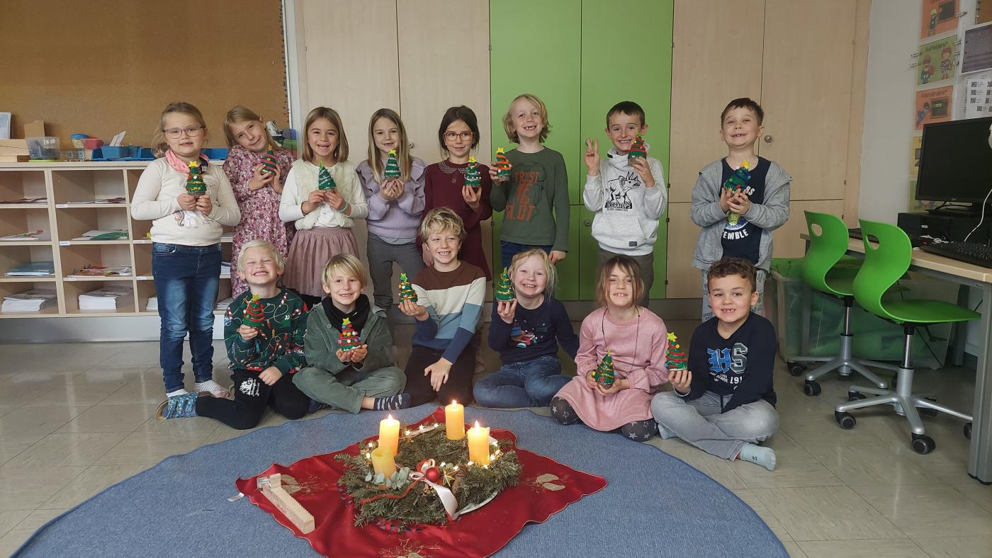 Adventszeit in der ersten Klasse von Kathrin Dieser 02. Januar 2025 2. Zusammensitzen um den Adventskranz, tägliches Vorlesen im Sitzkreis und fleißiges Basteln - so haben wir in der ersten Klasse den Advent erlebt.