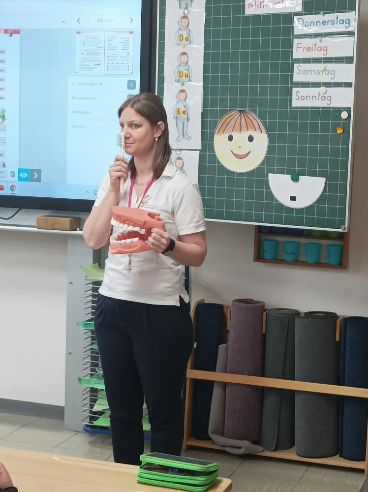 AVOMED Zahngesundheit von Sandra Huber 25. April 2024 3. Zahngesundheitserzieherinnen kommen ca. 3 -4 Mal pro Jahr zu uns.Jedes Kind bekommt eine Zahnbürste und einen Becher. Spielerisch vermitteln die Zahngesundheitserzieherinnen den Kindern die richtige Pflege der Zähne.