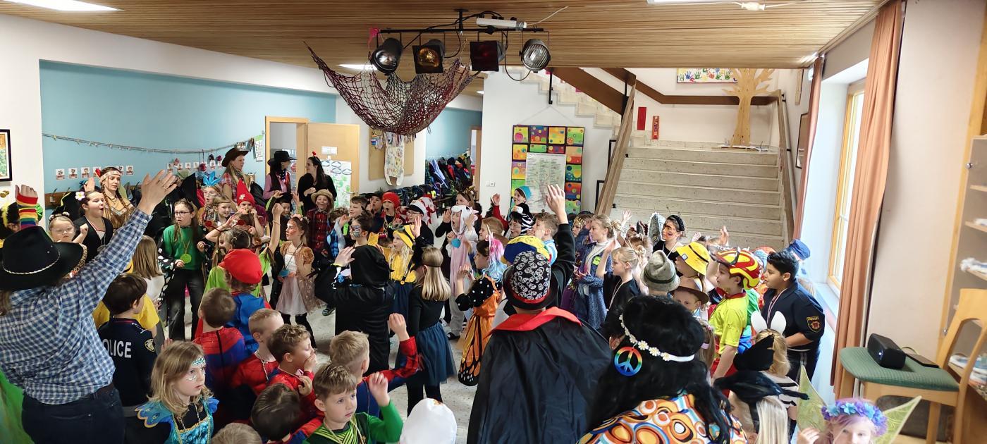 Fasching 2026 von Kathrin Dieser 19. Februar 2026 1. Die ganze Schule feierte am Faschingsdienstag mit lustigen Stationen den Faschingsausklang.